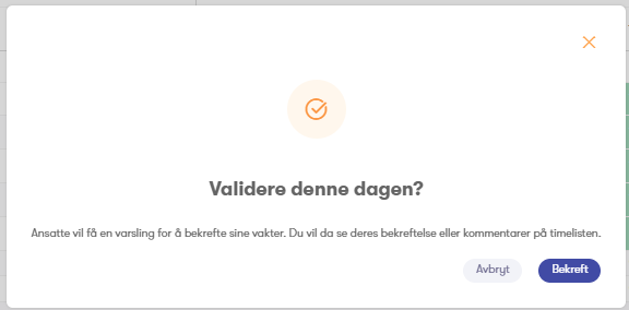 Varselet informerer Planlegger om at ansatte nå blir varslet om å bekrefte og eller kommentere de oppsatte tidene i Timeliste